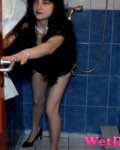 She is all dressed up, has her makeup made, her high heels on her feet, but she has to take a quick pee. He chooses to release her full bladder in the shower. She pees with huge jets then she washes her pussy with the shower. WD42